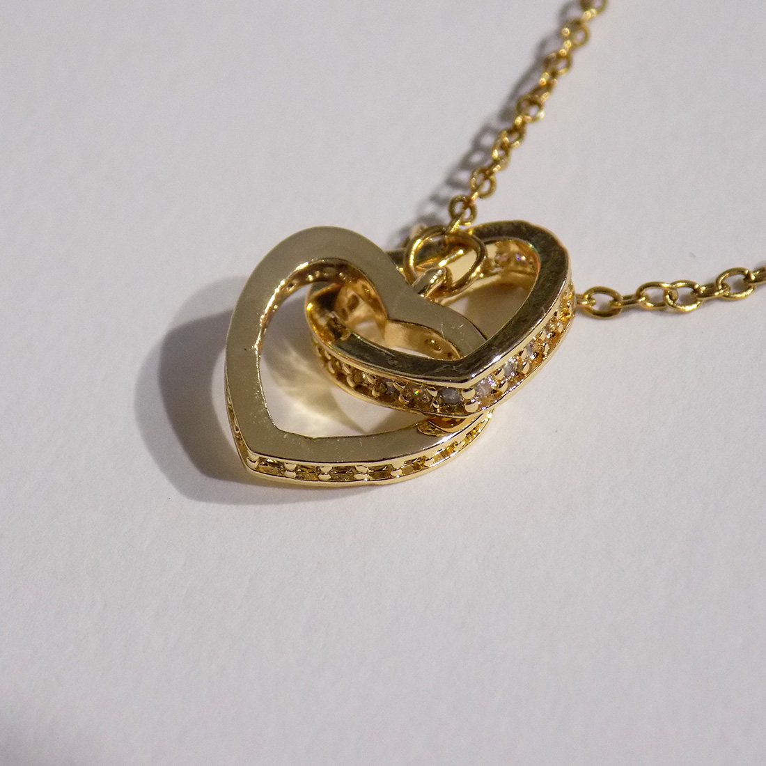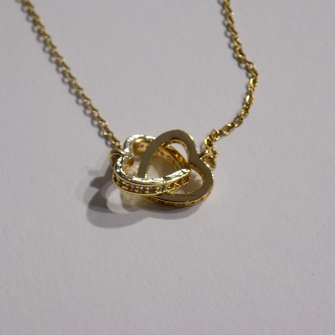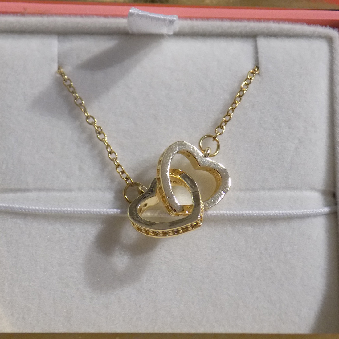 Um colar delicado e cheio de significado, ideal para simbolizar amor, união e ligação eterna. Este colar apresenta um pendente com dois corações entrelaçados, com pedras brilhantes que cobrem a as laterais dos corações, representando duas almas ligadas por um sentimento especial. Com acabamento em tom dourado e linhas suaves, o design é moderno, feminino e intemporal. A corrente fina realça o pendente de forma elegante, tornando este colar perfeito tanto para o dia a dia como para ocasiões especiais. É uma peça pensada para oferecer — simples, simbólica e carregada de emoção. ✨ Um presente perfeito para demonstrar amor, amizade ou cumplicidade, seja no Dia dos Namorados, aniversário, Dia da Mãe ou qualquer momento especial. Um colar que fala por si — porque o amor verdadeiro está nos pequenos detalhes 💛 Características: Colar banhado a ouro Pendente com dois corações entrelaçados Design minimalista e romântico Corrente fina e elegante Ideal para oferta