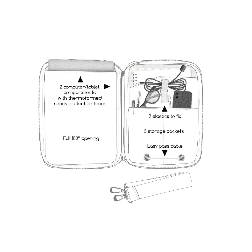 Mala para portátil de nova geração muito leve, robusta e compacta. Resistente à água, ao desgaste e ao impacto. Interior inteligente: – Numerosos bolsos de armazenamento – Proteções internas multicamadas – Cabo easy pass para carregar computador e telemóvel – Abertura total de 180° Perna externa revolucionária “Fix and Go”, para carregar garrafa de água, sanduíche, guarda-chuva etc. Anexa à alça retrátil do carrinho. Alça de ombro ajustável e retrátil incluída.