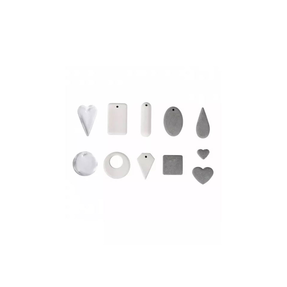 11 formas perfeitas de fazer peças de joalheria. Vários deles têm um furo incluído na peça para poder pendurá-los posteriormente. Moldes de silicone de alta qualidade perfeitos para uso com argila, resina e muitos outros materiais. Feito de material antiaderente, resistente ao calor, apto para o forno, micro-ondas, frigorífico e congelador.